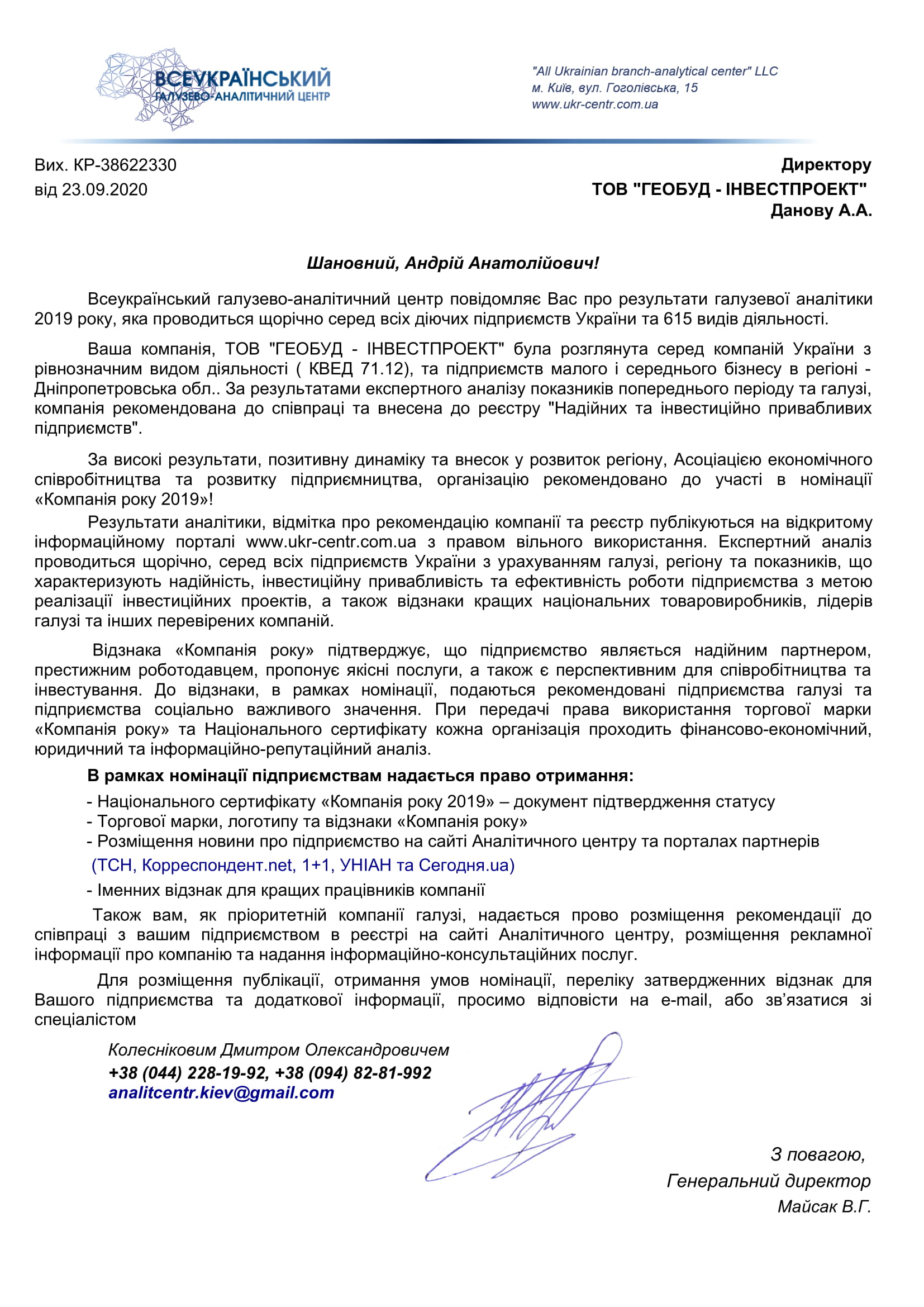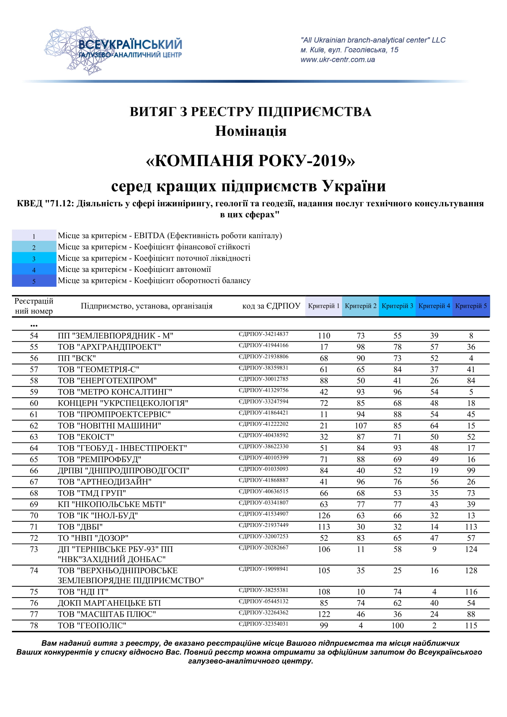 Основний вид діяльності: Діяльність у сфері інжинірингу, геології та геодезії, надання послуг технічного консультування в цих сферах.